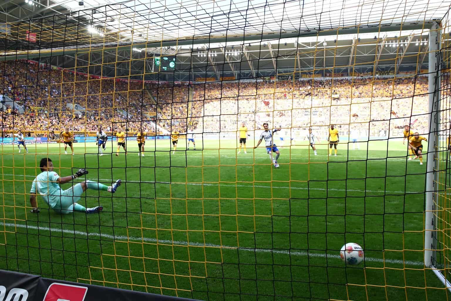 Auch nach Wiederanpfiff veränderte sich die Spieldynamik nicht – viele Aktionen im Mittelfeld, viele Ungenauigkeiten. Und wenn, dann zogen die Schalker mal das Tempo an, ohne aber sonderlich gefährlich zu werden. Eine Viertelstunde vor Schluss nickte der eingewechselte Kutschke eine Flanke von Lemmer ins lange Eck ein – der aufgebrandete Jubel verstummte aber schnell, weil Lemmer im Abseits stand. Der Treffer zählte nicht (76.). Auf der anderen Seite drang Karaman in den Dresdener Strafraum ein und wurde von Amoako ungeschickt von den Beinen geholt. Der Gefoulte trat selbst an und verlud Schreiber souverän zur umjubelten Schalker Führung (84.). Das Tor des Tages genügte den Schalkern, um die drei Punkte letztlich nicht unverdient aus Dresden zu entführen.