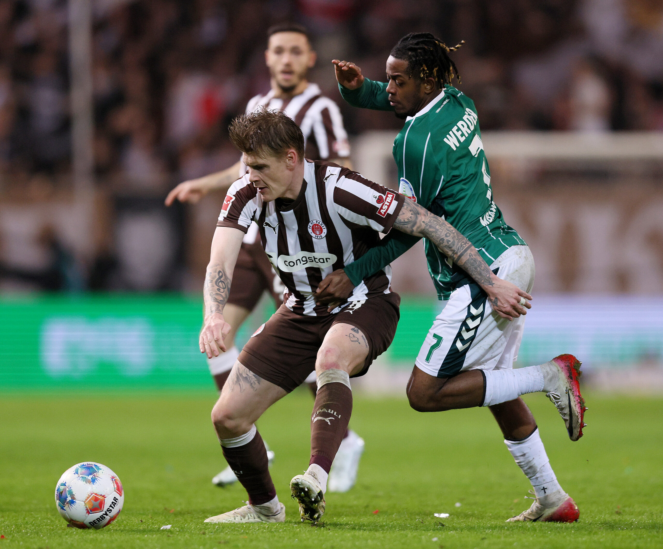Verteidiger Hauke Wahl traf für die Hausherren in der zweiten Hälfte per Kopf zur Führung – Werders Torhüter Mio Backhaus sah dabei gar nicht gut aus (55.). Der Ball rutschte dem 21-Jährigen durch die Finger. Sieben Minuten später machte allerdings auch Nikola Vasilj in St. Paulis Kasten eine unglückliche Figur und der eingewechselte Jovan Milosevic glich aus kurzer Distanz aus (62.). Joel Fujita sorgte dann erneut für großen Jubel bei den Gastgebern (70.).