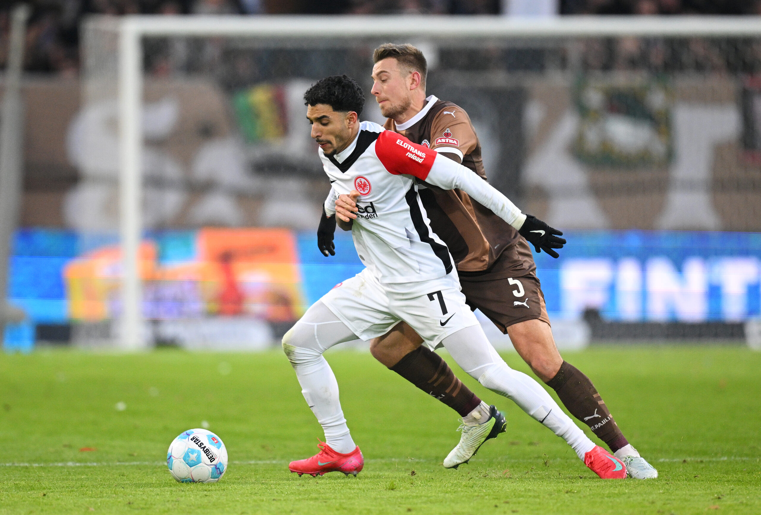 Am Millerntor waren alle Augen auf Omar Marmoush gerichtet. Nicht nur aufgrund der St.-Pauli-Vergangenheit des Ägypters, sondern auch, weil der Top-Stürmer der Frankfurter Eintracht wohl gerne zu Manchester City wechseln würde. Der Angreifer gab die perfekte Antwort auf die Spekulationen auf dem Platz und traf nach einer knappen halben Stunde sehenswert zum 1:0 für die SGE (32.). Beinahe hätten die Gastgeber zurückgeschlagen, doch Carlo Boukhalfas Versuch klatschte an den Pfosten.