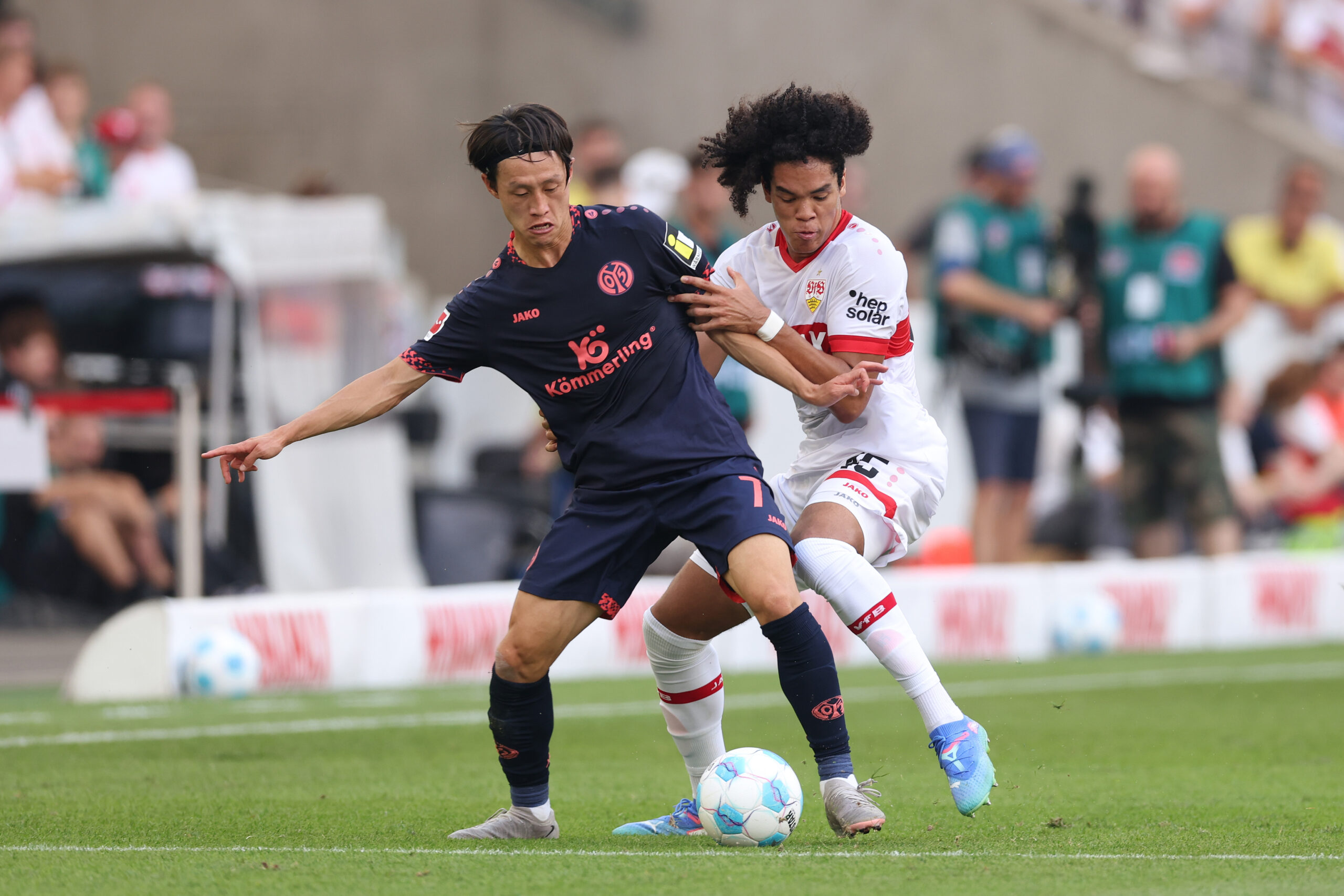 Infolge einer ausgeglichenen Anfangsphase in Durchgang zwei gelang den Mainzern sogar der Ausgleich. Lee Jae-Sung bediente den aufgerückten Hanche-Olsen, der von der Grundlinie aus flankte und den Kopf von Jonathan Burkardt fand. Aus fünf Metern markierte der Stürmer das 2:2 (61.). Trotz der defensiven Anfälligkeit zeigte der VfB aber ein starkes Heimspiel und präsentierte sich äquivalent zur Vorsaison enorm spielfreudig. Vor allem in der Schlussphase sahen die Zuschauer in der Mercedes-Benz-Arena ein Spiel auf ein Tor. Der stark aufgelegter Zentner und ein auf der Torlinie klärender Dominik Kohr (85.) schienen der Mannschaft von Trainer Bo Henriksen das Unentschieden jedoch festhalten zu können. Doch kurz vor dem Schlusspfiff erzielte Neuzugang Fabian Rieder mit einem direkten Freistoß das erlösende 3:2 (87.). Vermeintlich. Denn in der Nachspielzeit traf Innenverteidiger Maxim Leitsch und sicherte den tapfer kämpfenden Mainzern einen insgesamt überaus glücklichen Punkt (94.).