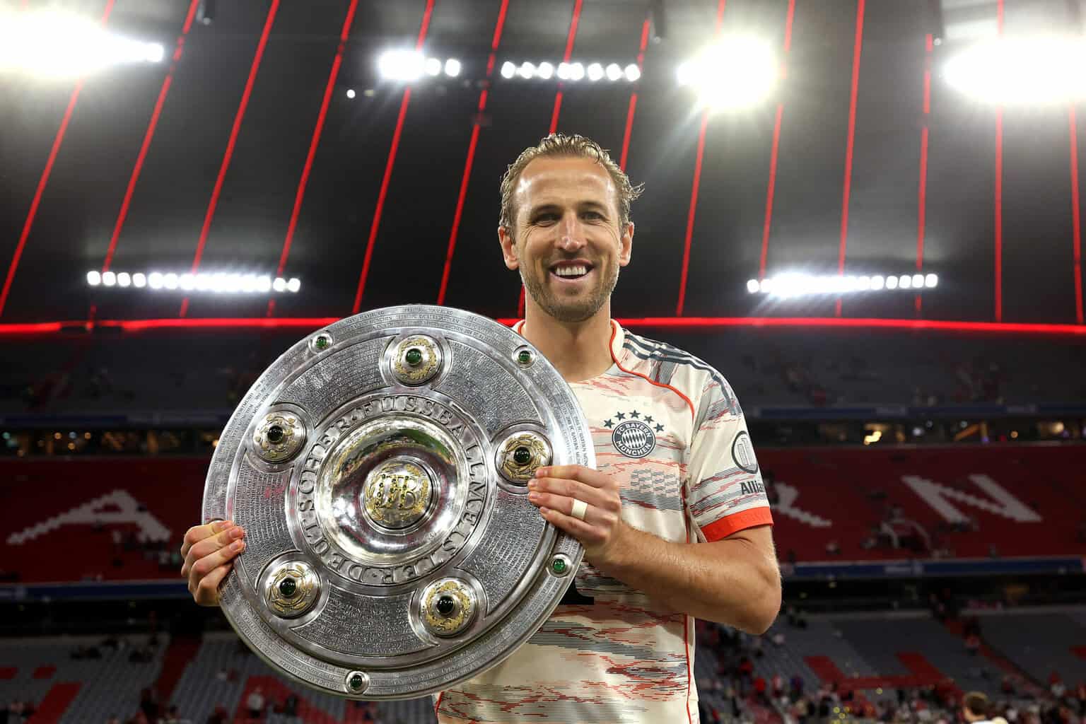 Die Torjägerkanone hielt Harry Kane bereits nach seiner ersten Saison im Trikot des FC Bayern München in der Hand. Diese individuelle Auszeichnung sicherte sich der Engländer auch in dieser Spielzeit wieder. Viel wichtiger: Erstmals in seiner Karriere hielt der 31-jährige eine Trophäe in den Händen.