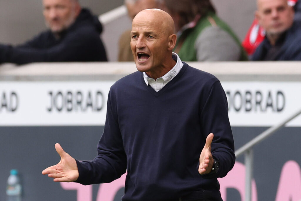 FREIBURG IM BREISGAU, GERMANY - SEPTEMBER 14: Peter Zeidler, Head Coach of Bochum, reacts during the Bundesliga match between SC Freiburg and VfL Bochum 1848 at Europa-Park Stadion on September 14, 2024 in Freiburg im Breisgau, Germany. (Photo by Alexander Hassenstein/Getty Images)