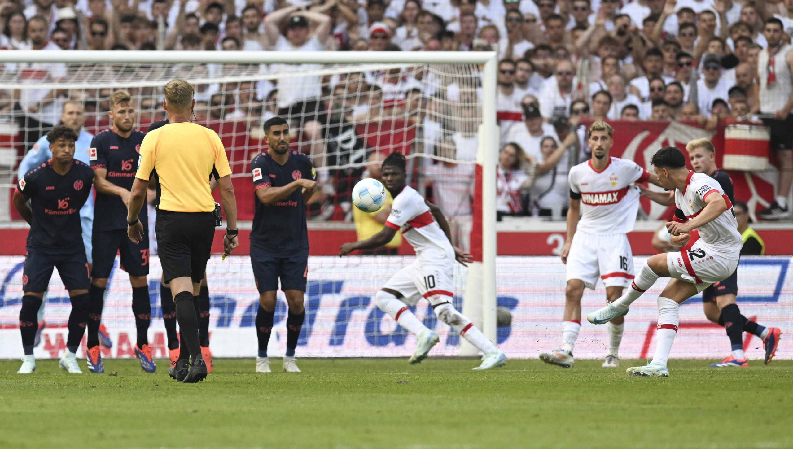 Für Diskussionen sorgte vor allem der Elfmeter, den die Rheinhessen vor dem 1:2-Anschlusstreffer zugesprochen bekamen. „Nein, das reicht für mich nicht“, stellte VfB-Trainer Sebastian Hoeneß im Anschluss an die Begegnung klar. Jonathan Burkardt hielt bei Sky dagegen und gab zu, sich definitiv „gefoult gefühlt zu haben.“