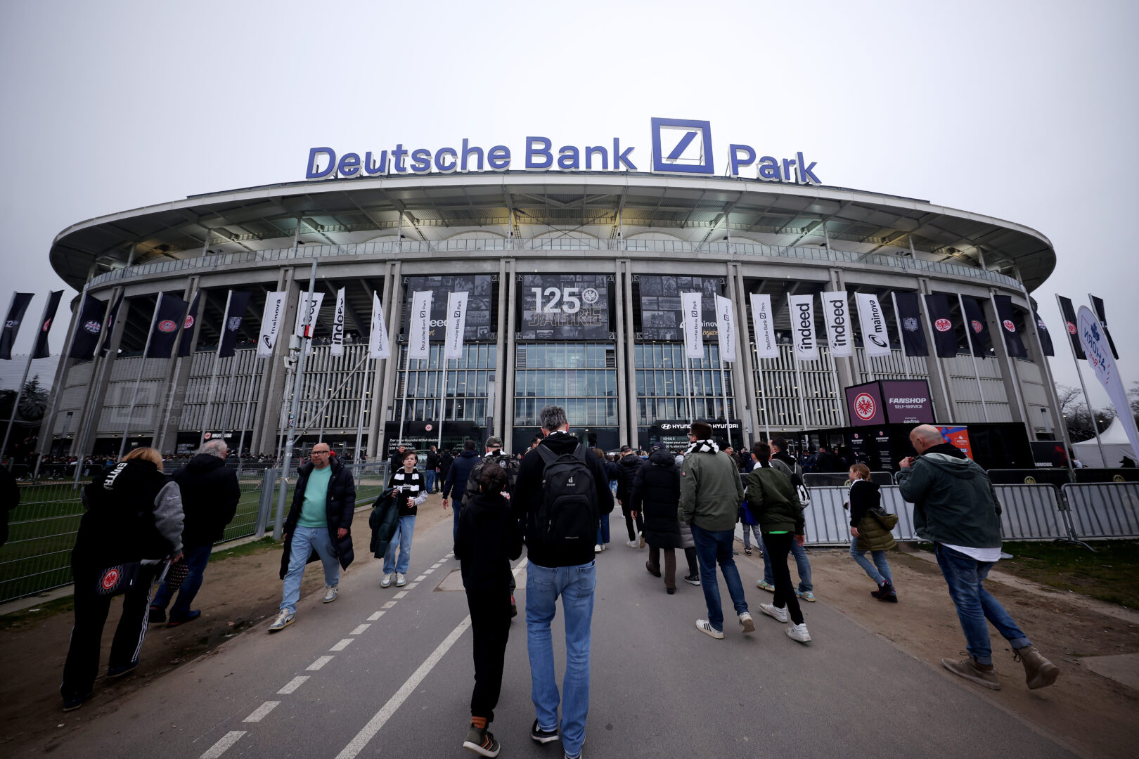 FRANKFURT AM MAIN, GERMANY - MARCH 10: A general view as fans arrive at the stadium prior to the Bundesliga match between Eintracht Frankfurt and TSG Hoffenheim at Deutsche Bank Park on March 10, 2024 in Frankfurt am Main, Germany. (Photo by Alex Grimm/Getty Images)