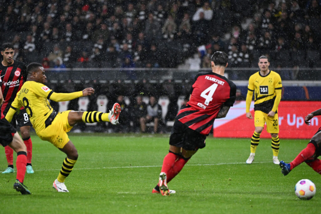 Frankfurt spielte schnell, wirkte gegen den Ball griffig. Dortmund war oft einen Schritt zu langsam, während die Hessen vor allem über die eigene rechte Seite zu Chancen kamen. Immer wieder war Chaibi im Spiel, der zweimal mit einem Flachpass von der Grundlinie den Mitspieler verpasste. Die SGE hätte mit einer etwas besseren Präzision höher führen können. Ramy Bensebaini hatte für den BVB nach 22 Minuten eine gute Kopfballchance, setzte den Ball aber rechts am Tor vorbei. Fast im Gegenzug klingelte es auf der anderen Seite: Frankfurt befreite sich schön aus dem Pressing, konterte schnell und präzise. Ansgar Knauff schloss ab, scheiterte an Gregor Kobel, kam noch einmal an den Ball, der dann den Weg zu Marmoush fand: 2:0! Noch bitterer für Dortmund war die Tatsache, dass Kobel anschließend auch noch ausgewechselt werden musste.