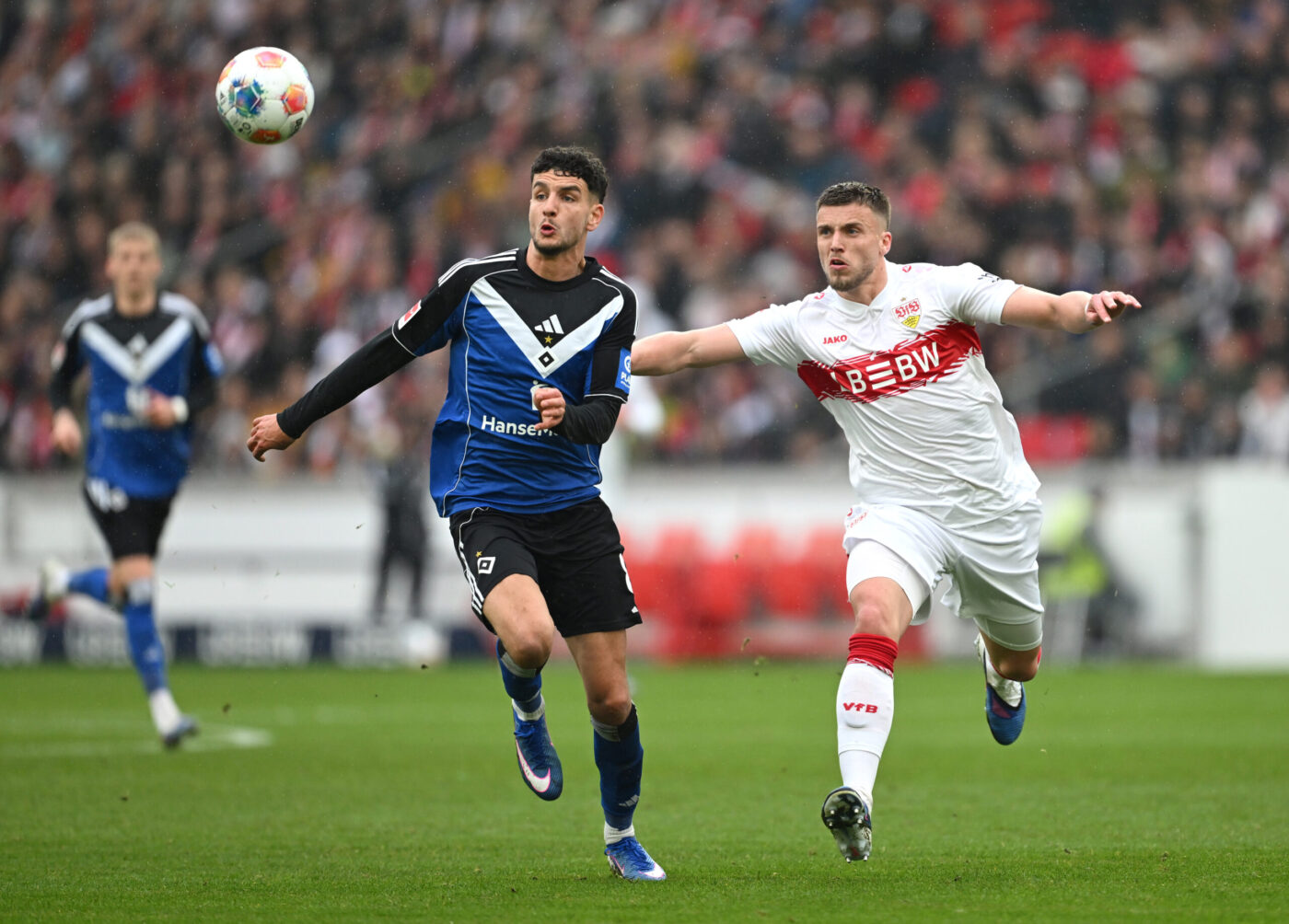 Das Spiel begann mit einer hohen Intensität, der VfB dominierte zunächst einmal und hatte einiges an Ballbesitz auf der eigenen Seite. Die ersten ruhenden Bälle der Schwaben sorgten auch gleich schon für Gefahr. Deniz Undav hatte nach neun Minuten einen Abschluss aus guter Position, verzog allerdings deutlich. Eine knappe Viertelstunde war gespielt als der HSV den ersten guten Konter fuhr. Doch Fabio Balde traf den Ball beim Abschluss quasi überhaupt nicht und verzog komplett, sodass es sogar reinen Einwurf gab.