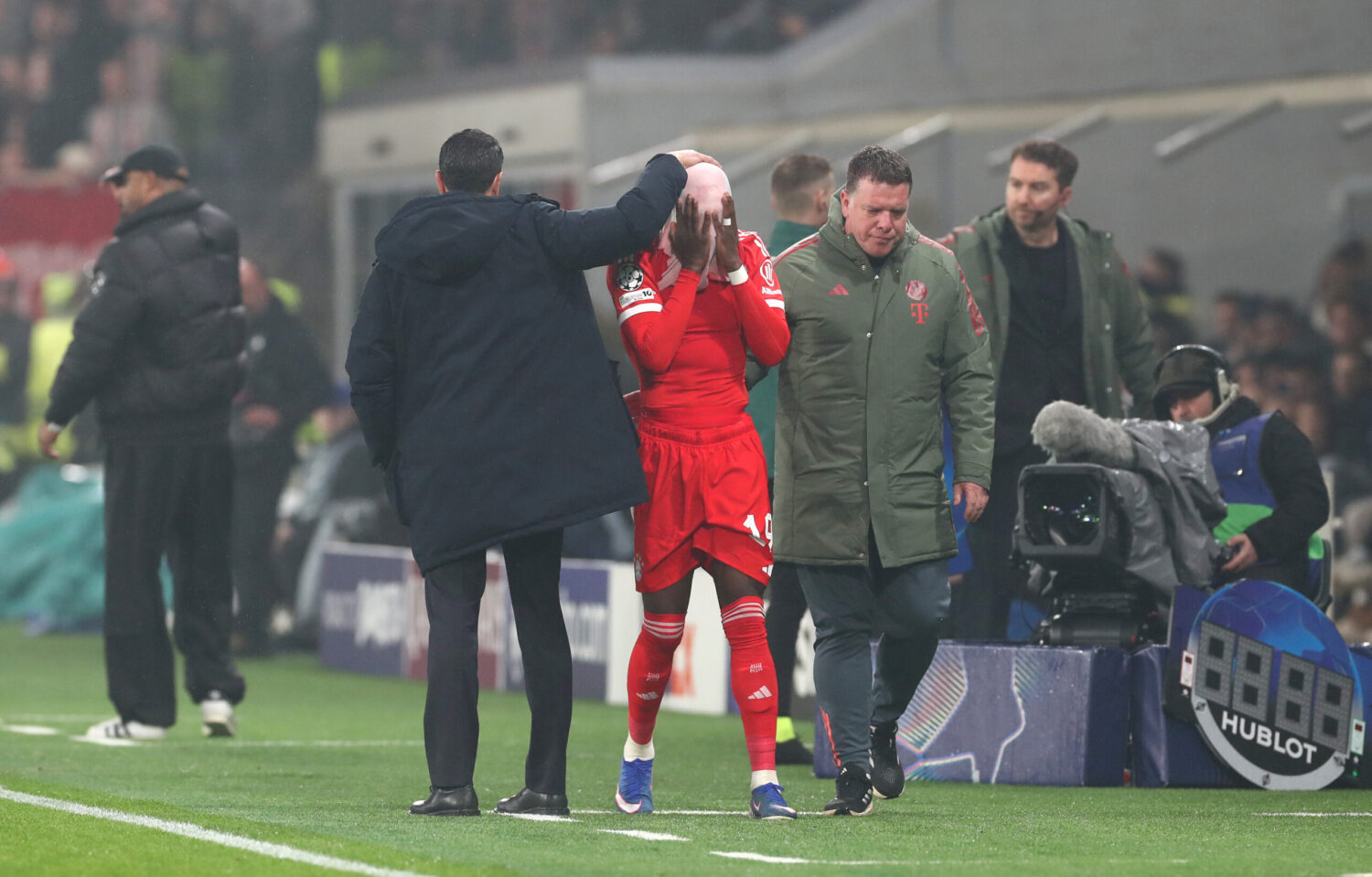 In der zweiten Hälfte hörten die Bayern mit dem Toreschießen aber nicht auf, so stand es nach den regulären 90 Minuten 6:0. Schon da musste die Kompany-Elf zwei Wermutstropfen verkraften. Zunächst müsste Alphonso Davies nach seiner Einwechslung in der Halbzeitpause den Platz bereits nach 25 Minuten wieder unter Tränen verlassen. Der zuletzt so sehr von Verletzungen geplagte Außenverteidiger hat sich aber wohl „nur“ eine Zerrung zugezogen. Auch Jamal Musiala verließ das Feld enttäuscht mit Sprunggelenksproblemen, nachdem er zuvor minutenlang über den Platz gehumpelt war.
