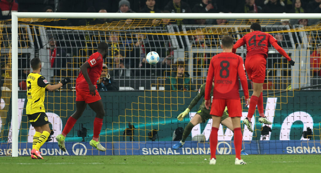 Die Dortmunder mussten früh wechseln, Waldemar Anton verletzte sich und wurde durch Niklas Süle ersetzt. Den ersten Abschlussversuch des Gastgebers gab es nach 21 Minuten, dieser wurde aber direkt geblockt. Der FCB ließ nicht viel zu, weil das Risiko im Spiel nicht ganz so hoch war, der BVB verteidigte sehr aufmerksam, deswegen war es kein Spiel mit vielen Chancen. Die erste wirkliche Chance des BVB saß dann. Nach 27 Minuten lief Jamie Gittens Gegenspieler Konrad Laimer weg, kam mit Tempo in Richtung Strafraum, zog in die Box und schloss in die lange Ecke ab – 1:0! Danach gab es noch eine Hiobsbotschaft, denn Harry Kane musste verletzt raus. Thomas Müller ersetzte ihn. Der kam auch gleich im Strafraum zum Kopfball, bekam aber keinen Druck hinter den Ball. Wenig später war dann Pause, in der Phase zuvor passierte nicht allzu viel.