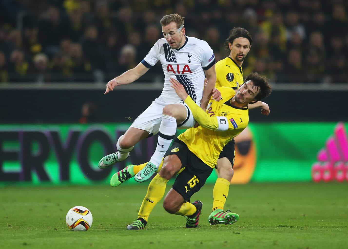 Harry Kane im Zweikampf mit Mats Hummels (2016)