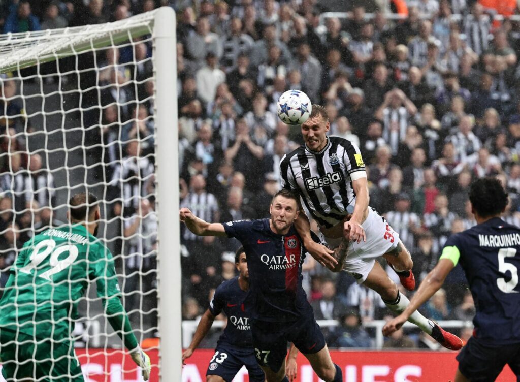 Newcastle United feiert beim ersten Champions-League-Heimspiel seit 21 Jahren einen furiosen 4:1-Sieg gegen Titelfavorit PSG. Die Gäste aus Frankreich hatten zwar mehr Ballbesitz, doch Newcastle war die giftigere Mannschaft, gewann die Zweikämpfe und entwickelte auch deutlich mehr Zug zum Tor. Einen katastrophalen Fehlpass von Marquinhos nutzen die Magpies durch Miguel Almirón zum 1:0 (17.), wenige Minuten vor dem Pausenpfiff legte Dan Burn mit einem präzisen Kopfball nach (39.). Nach dem Seitenwechsel konnten die Engländer sogar auf 3:0 erhöhen: Sean Longstaff traf aus spitzem Winkel, wobei Gianluigi Donnarumma keine gute Figur machte (50.). Für etwas Ergebniskosmetik konnten die Pariser immerhin sorgen: Nach einem herausragenden Chipball von Warren Zaire-Emery war Lucas Hernandez per Kopf zur Stelle (56.). Den Schlusspunkt allerdings setzte Newcastle mit einem Traumtor: Fabian Schär nahm aus rund 20 Metern Maß und schlenze den Ball zum 4:1 ins Netz (90.+1.).