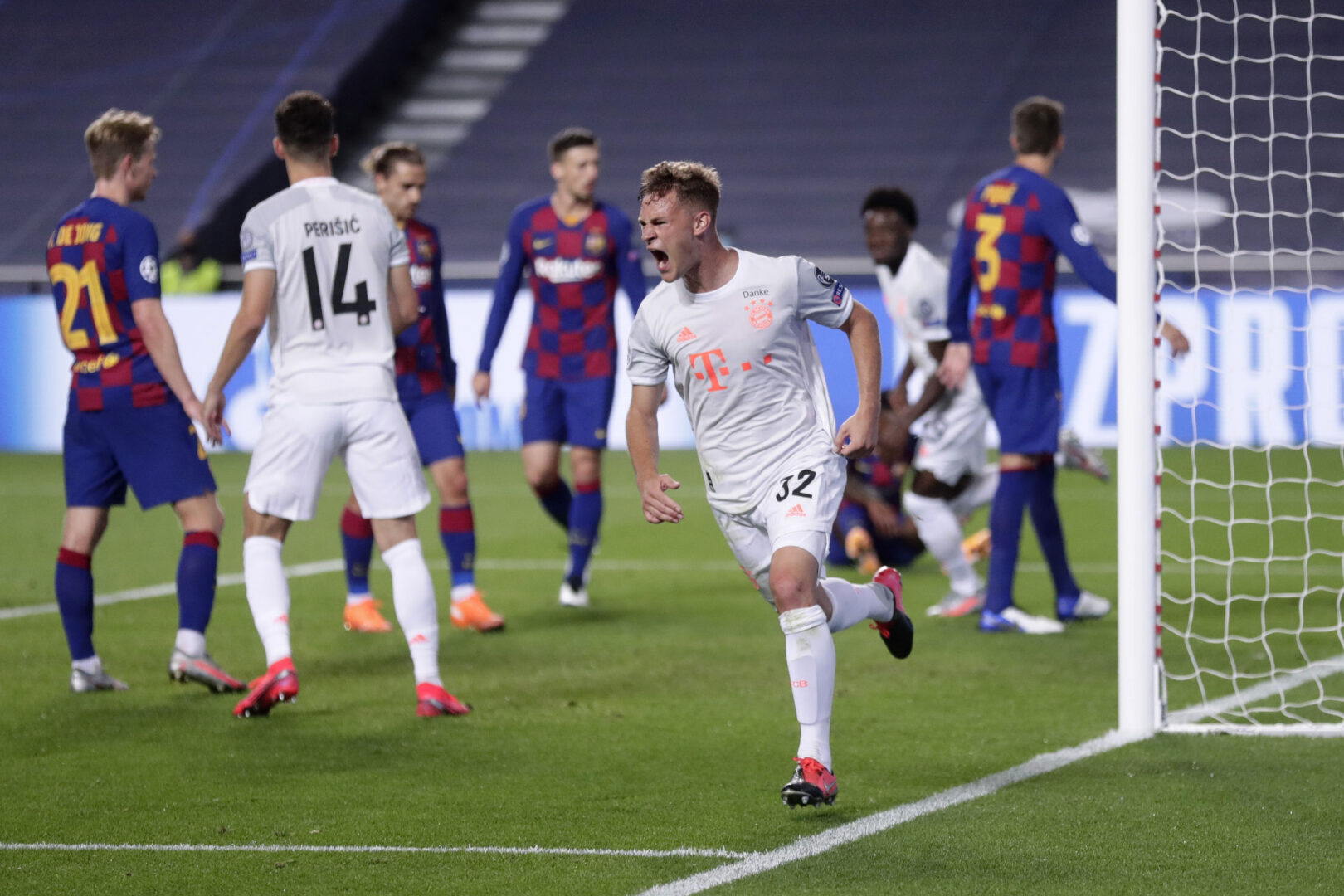 Auf dem Weg zum Champions-League-Titel 2020 überrollen Joshua Kimmich und seine Bayern Barca mit 8:2. (Photo by Manu Fernandez/Pool via Getty Images)