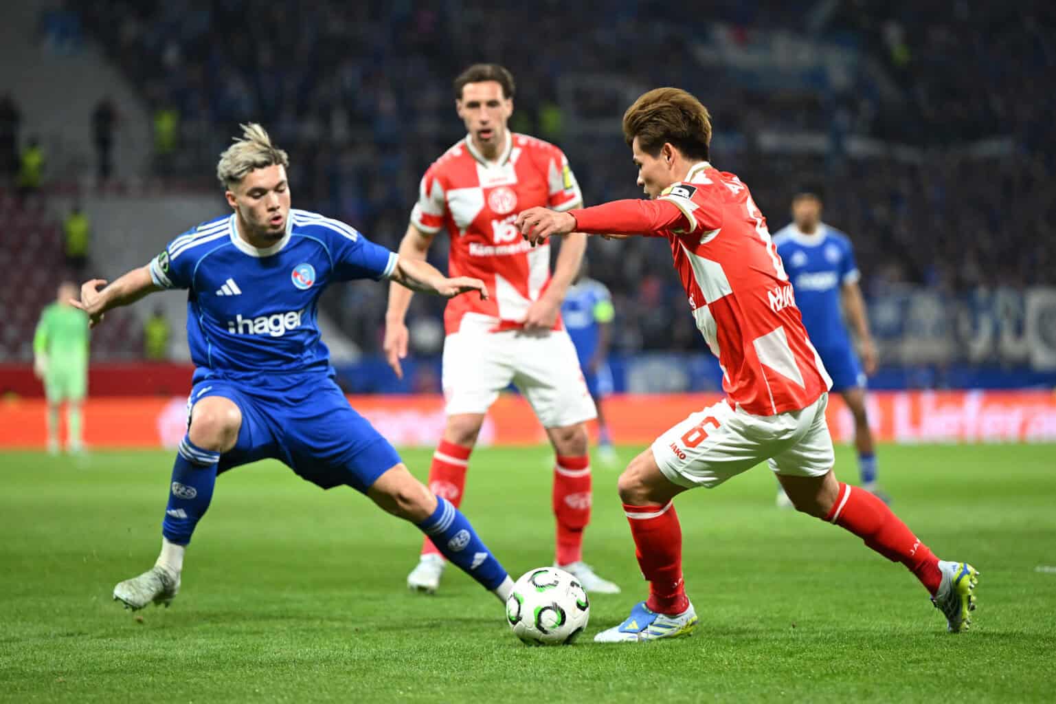 Auf der Gegenseite vergab Mainz dann die große Chance auf das 3:0. Erst parierte Penders stark gegen Kohr, dann brachte Joker Armindo Sieb den Ball aus wenigen Metern, aber sehr spitzem Winkel, nicht auf das Tor. Kurz vor Ende der regulären Spielzeit hatte wieder Sano seine Füße im Spiel, doch Tietz kam an seine gefährliche Hereingabe nicht mehr heran. Nach einer Flanke vom eingewechselten Nikolas Veratschnig war es erneut Sieb, der eine große Chance liegenließ und den Ball nicht aufs leere Tor lenken konnte.