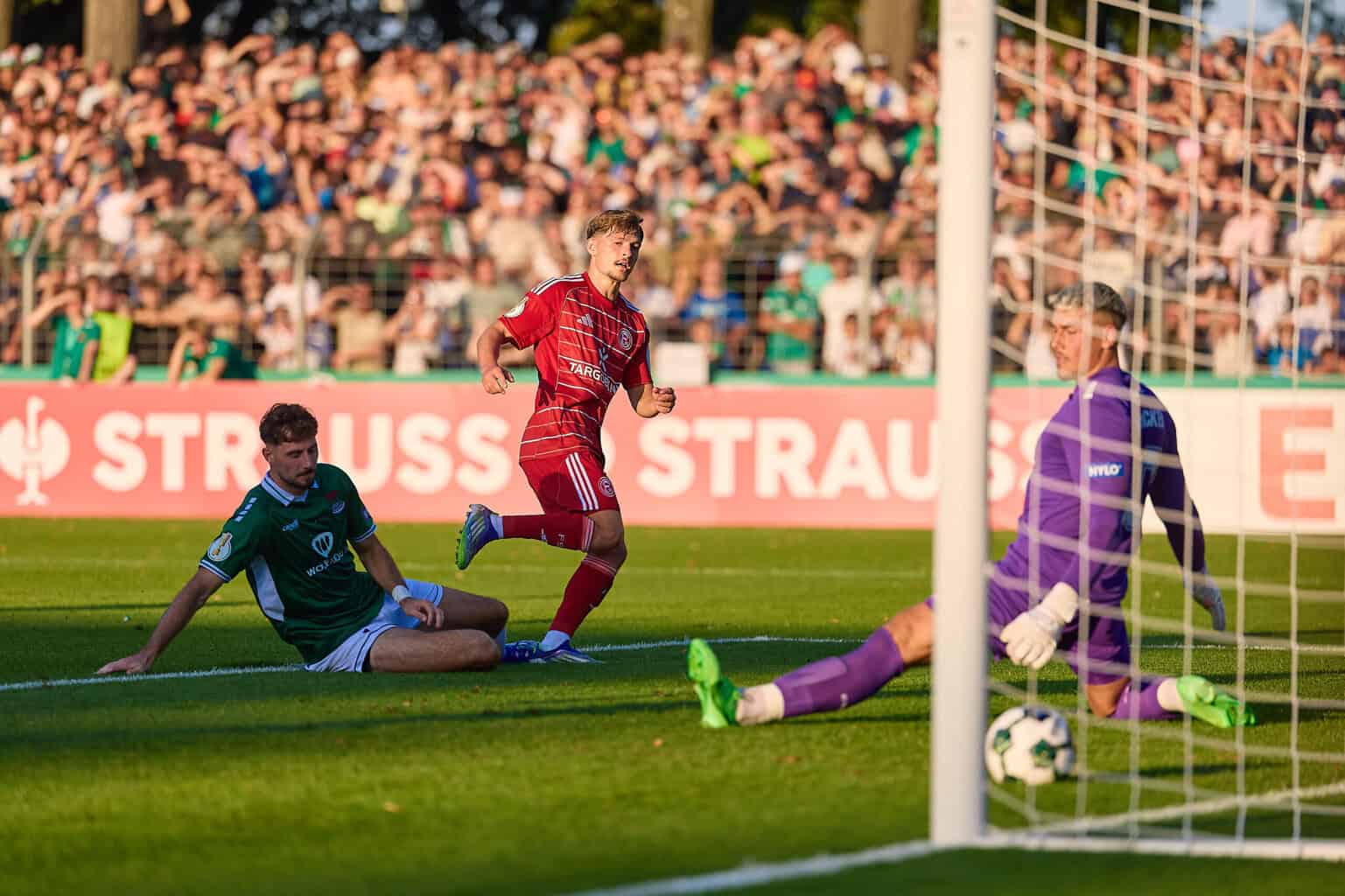 Doch kurz vor dem Seitenwechsel führte einer der wenigen Schweinfurter Vorstöße zu einem von Moritz Heyer verursachten Handelfmeter, den Manuel Wintzheimer souverän zum 1:0-Halbzeitstand verwertete. Die Fortuna zeigte sich vom Gegentor unbeeindruckt und rannte weiter an. Der Ausgleich fiel in der 66. Minute, als Shinta Appelkamp die Kugel nach Zuspiel von Valgeir Lunddal ins rechte obere Eck befördere.