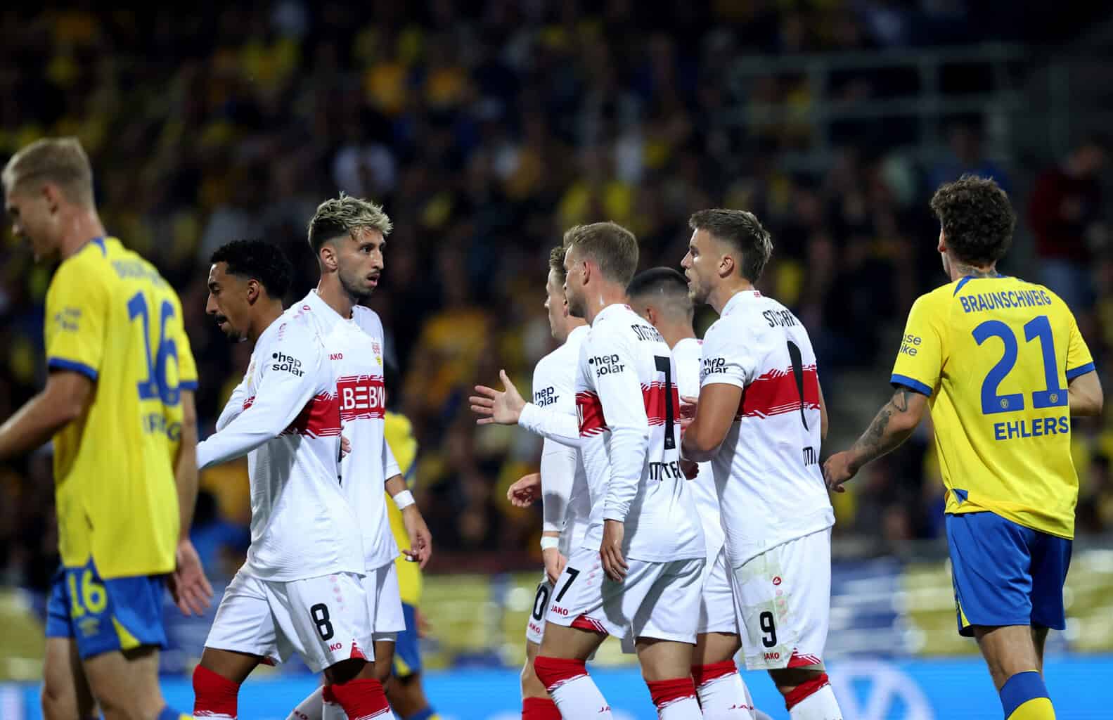 Nach zwei Pflichtspielniederlagen zum Auftakt im Supercup und der Bundesliga, trat der VfB mit dem Ziel an, seinem Favoritenstatus in Braunschweig gerecht zu werden. Die Eintracht hingegen startete mit zwei Siegen aus drei Spielen gut in die Zweitligasaison. Beide Trainer setzten weitestgehend auf ihre stärkste Elf, einzig Nick Woltemade nahm beim VfB zunächst etwas überraschend auf der Bank Platz.