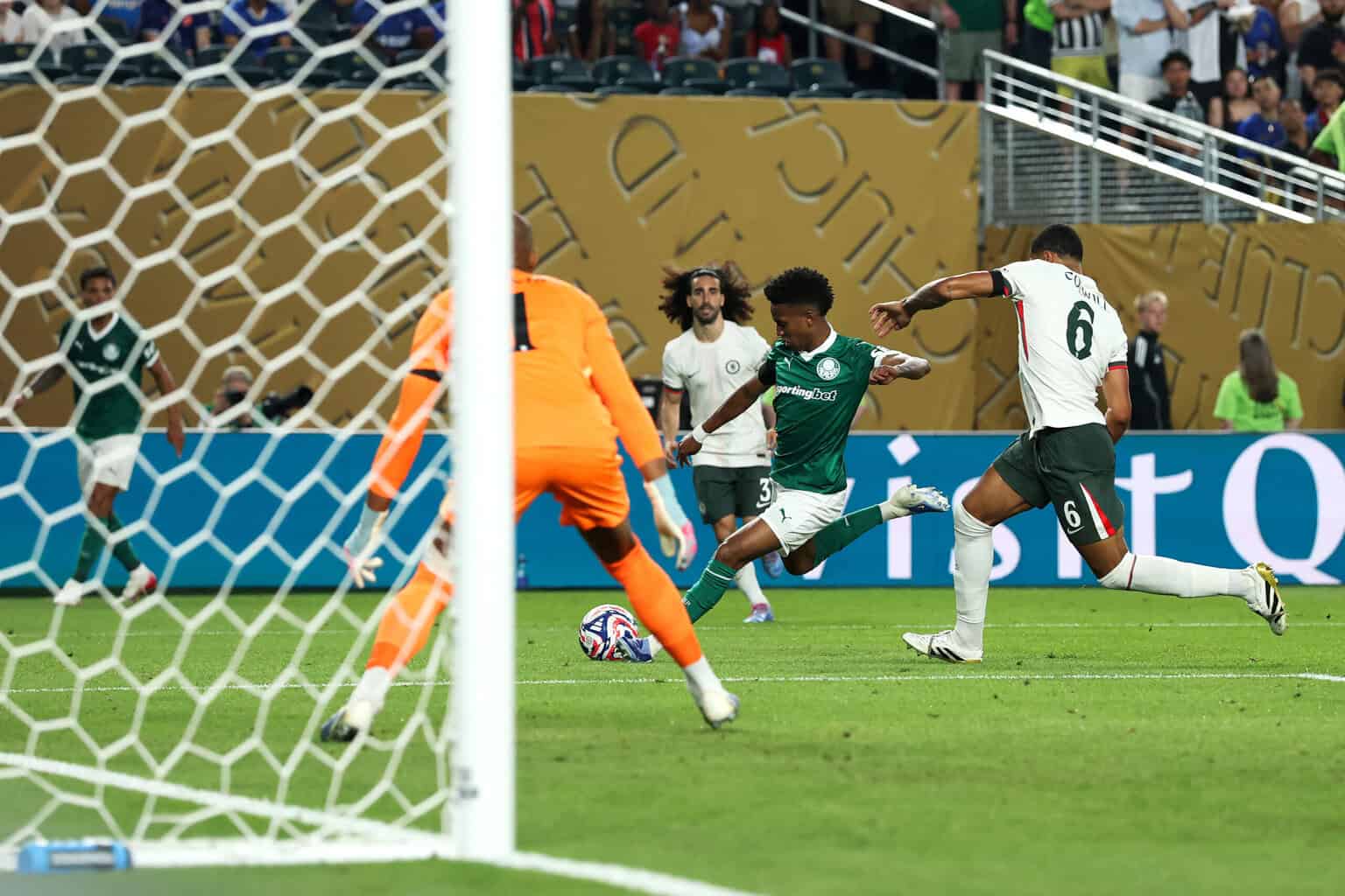 Nach dem Seitenwechsel änderte sich das Bild. Palmeiras kam mit neuem Schwung aus der Kabine und meldete mit mehreren Freistößen in den ersten Minuten endlich Gefahr an. Es dauerte nur bis zur 52. Minute, ehe der Klub aus Sao Paulo ausglich. Und natürlich musste Estevao Willian treffen. Das 18-jährige Supertalent wechselt nach der Klub-WM zu Chelsea, ärgerte die neuen Kollegen aber mit einer starken Einzelaktion gegen Levi Colwill und einem strammen Schuss aus spitzem Winkel unter die Latte.