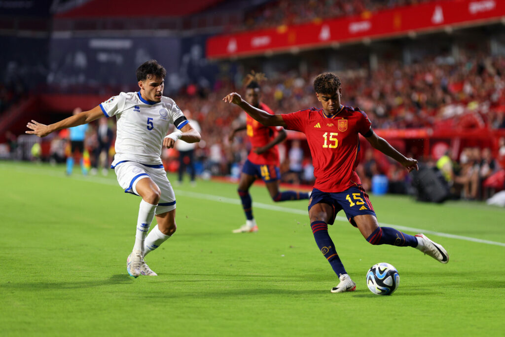 Der FC Barcelona bringt häufiger sehr gute Talente hervor, die schon früh den Sprung in die erste Elf schaffen. Gavi, Pedri oder auch Fermín sind aktuelle Beispiele. Ein Spieler hat 2023 aber besonders ausgiebige Schlagzeilen geschrieben: Lamine Yamal. Im Juli 2007 wurde er geboren, früh zeigte er, welch außerordentliches Talent er mitbringt. Im April 2023, damals noch mit 15 Jahren, feierte er sein Debüt gegen Real Betis, spielte sieben Minuten, war beinahe schon an einem Tor beteiligt. In der zweiten Hälfte des Kalenderjahres zeigte sich der Offensivspieler dann immer häufiger bei den Katalanen in der ersten Elf.