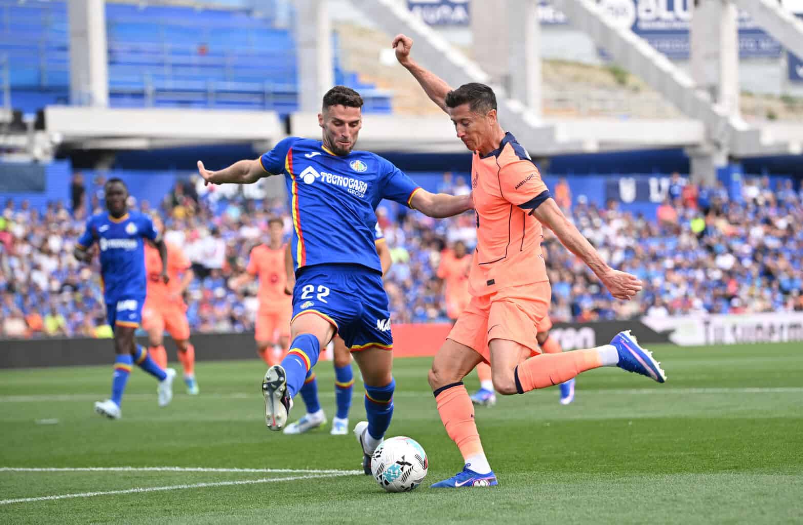 Der Ball lief in den Anfangsminuten hauptsächlich durch die Reihen des FC Barcelona, der versuchte gegen den tiefstehenden Block der Hausherren Lösungen zu finden. Die erste Torannäherung gab es durch Robert Lewandowski, der nach einer Flanke von Gavi auf dem linken Flügel zum Kopfball hochstieg, das Spielgerät aber auf das Tor von Getafe-Schlussmann David Soria legte (5.). Ein weiterer Versuch von Dani Olmo an der Strafraumkante ging kurz darauf klar am Tor vorbei (7.).
