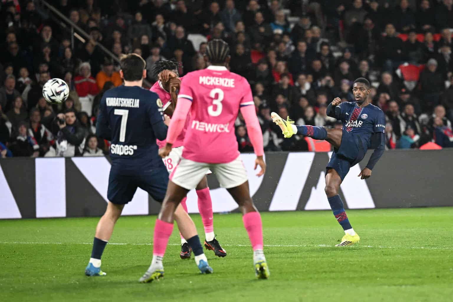 PSG reagierte schnell und stellte die Weichen noch vor der Pause wieder auf Sieg. Erneut war es eine Standardsituation, die zum Erfolg führte. Nach einer Ecke verlängerte Kvaratskhelia per Kopf, Dembélé stand am zweiten Pfosten völlig frei und schob aus kürzester Distanz zum 2:1 ein (33.).