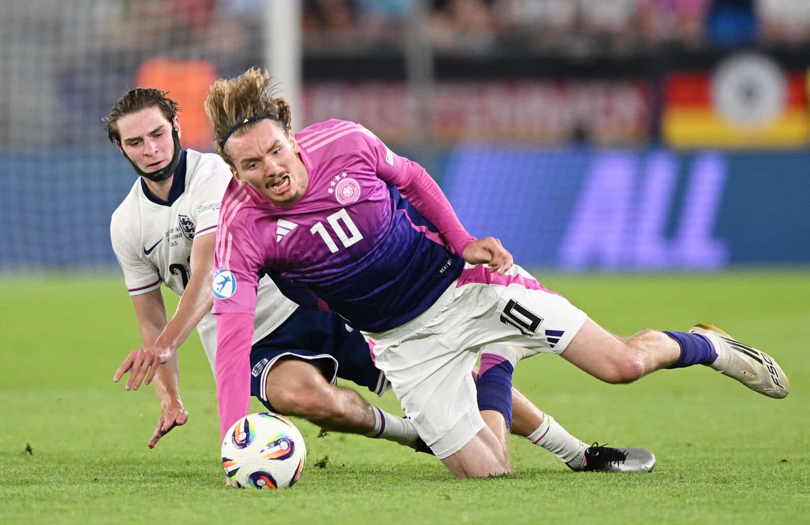 Es ging also in die Verlängerung. Dort brauchte England keine zwei Minuten, um die erneute Führung herzustellen: Von rechts flankte Morton, im Zentrum schüttelte der gerade erst eingewechselte Jonathan Rowe seine Bewacher Oermann und Nnamdi Collins ab und nickte zum 3:2 ein. Di Salvo reagierte und brachte Stürmer Nicolo Tresoldi für Kapitän und Sechser Eric Martel, stellte damit auf Doppelspitze um. Deutschland hatte in der Folge zwar viel Ballbesitz, schaffte es aber nicht, gegen jetzt natürlich sehr diszipliniert verteidigenden Briten die Lücke zu finden.