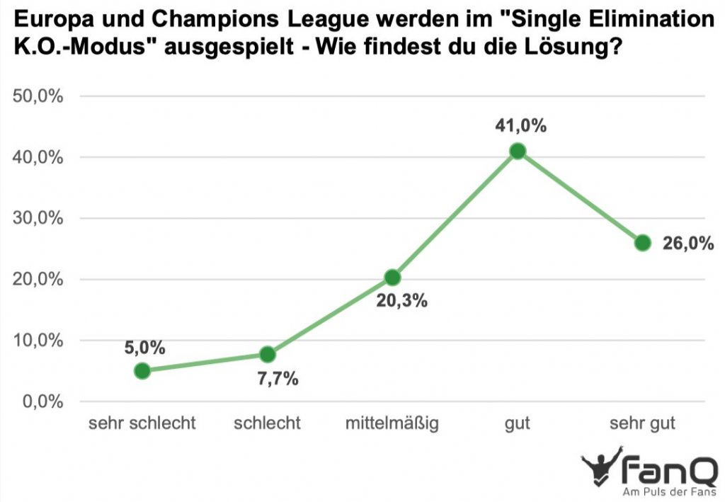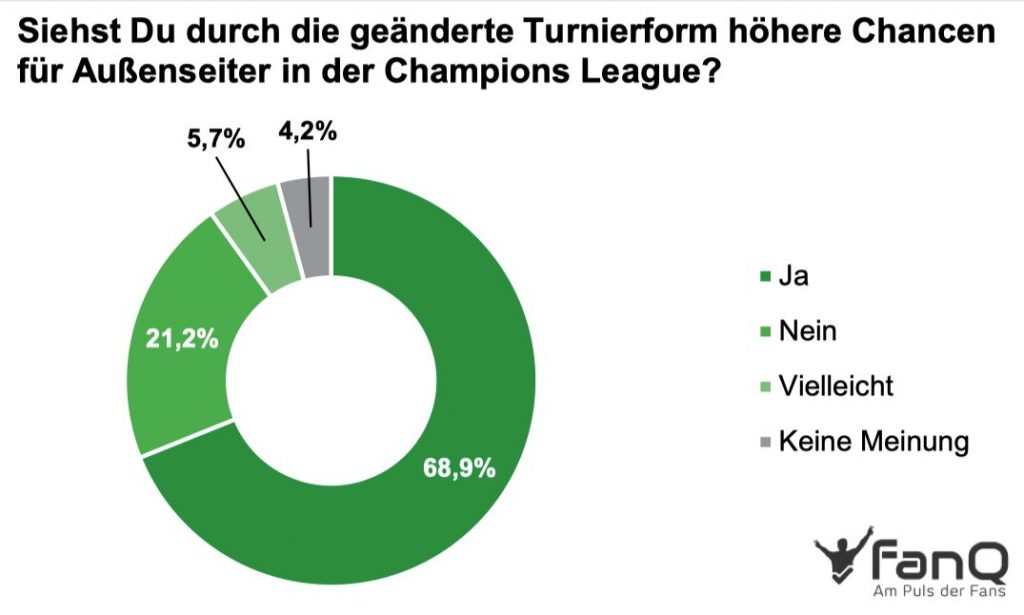 Die Modus-Änderung in der Champions League könnte dabei vor allem den Außenseitern gelegen können. Dieser Meinung sind auch knapp 70 Prozent der FanQ-User. Es genügen nun 90 starke Minuten, um einen vermeintlichen Favoriten zu bezwingen. Korrekturversuche gibt es nicht.