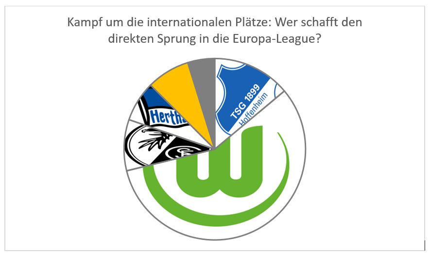 Auch einen Halbtonschritt weiter unten in der Tabelle geht es spannend zu, im Kampf um die Europa League. Dadurch, dass Leverkusen und der FC Bayern im Pokalfinale stehen, befähigt auch Platz 7 zur Teilnahme am europäischen Wettbewerb – über den Umweg 3. Qualifikationsrunde.