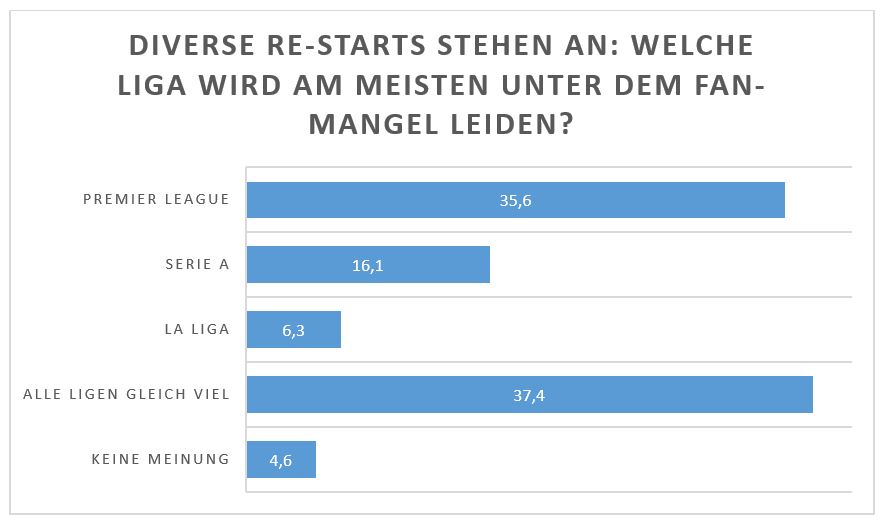 Auch hier ist die Meinung der Fans relativ eindeutig. Im Grunde genommen werden alle Ligen unter dem Ausschluss der Fans leiden, besonders aber die Premier League. Hier sei vor allem auch der FC Liverpool genannt. Die Mannschaft von Jürgen Klopp steht 25 Punkte vor Manchester City und hat damit schon neun Finger am Pokal. Für die Reds wird es die erste Meisterschaft seit 30 Jahren geben, gleichzeitig auch den ersten Titel in der 1992 eingeführten Premier League. Allerdings sind sie gezwungen, gerade dieses besondere Ereignis in geschlossener Gesellschaft zu feiern. Ein Stich ins Herz für den Klub, der sich wie kaum ein Zweiter in der Premier League über die eigenen Fans definiert.