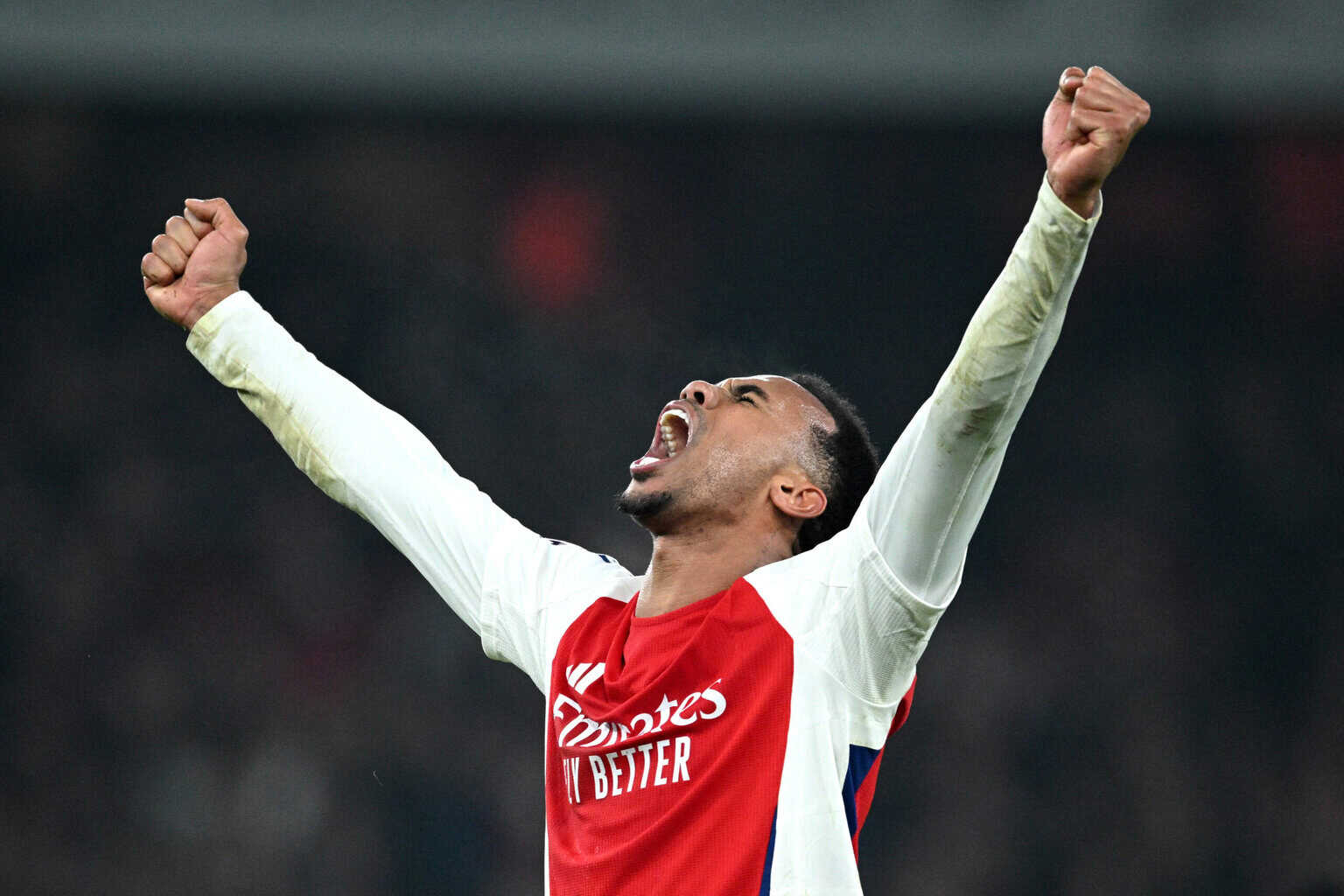Gabriel Magalhaes streckt die Arme in die Luft jubelt