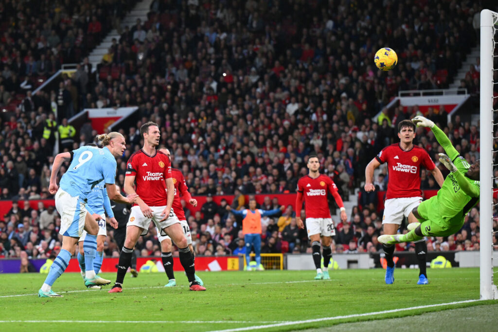Im restlos ausverkauften Old Trafford bot sich schnell das Bild, das man von jüngeren Manchester Derbys gewohnt ist: ManCity war um Ballbesitz und Kontrolle bemüht, während United auf Fehler seines Rivalen lauerte. Nach drei Minuten fuhren die Hausherren einen ersten Angriff, an dessen Ende Scott McTominay überhastet abschloss und Ederson damit vor keine Probleme stellte. Auf der anderen Seite wurden die Skyblues in Minute acht erstmals richtig gefährlich: Nach einer Flanke von Kyle Walke kratzte André Onana den Ball zuerst gegen Phil Foden und im Nachsetzen gegen Erling Haaland von der Linie. Auch bei einem präzisen Abschluss von Jack Grealish war der Schlussmann zur Stelle (20.). Abgesehen von den genannten Chancen war bei den Citizens aber noch durchaus Luft nach oben, die Ballstafetten nicht immer sauber.