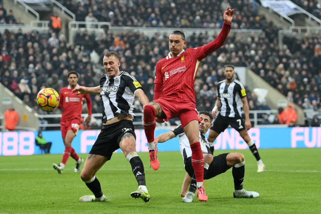Nach den begeisternden 2:0-Siegen über Real Madrid und Manchester City stand der FC Liverpool bei Newcastle United vor der nächsten schwierigen Aufgabe. Die Anfangsphase gehörte den Magpies, doch den gefährlichsten Abschluss gaben die Gäste durch Alexis Mac Allister, der den Pfosten traf, ab. Auf der Gegenseite setzte Jacob Murphy die Kugel aus halbrechter Position ebenfalls an den Pfosten (22.). In Minute 35 bediente Bruno Guimaraes den an der Abseitslinie lauernden Alexander Isak, der sich aufdrehte und den Ball aus etwa 19 Metern unter die Latte drosch – 1:0.
