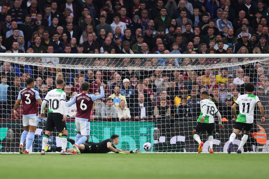 Die Partie im ausverkauften Villa Park begann höchst kurios. Nach 61 Sekunden lag der Ball bereits im Netz. Dabei schien Emiliano Martinez eine leicht abgefälschte, aber eigentlich harmlose Flanke von Harvey Elliott schon abgefangen zu haben, doch er ließ das Spielgerät, woraufhin dieses ins Tor kullerte – 0:1. Rund 120 Sekunden später probierte es Mohamad Salah per Schlenzer aufs lange Eck, Pau Torres fälschte entscheidend, sodass der knapp am Tor vorbeiflog, ab.