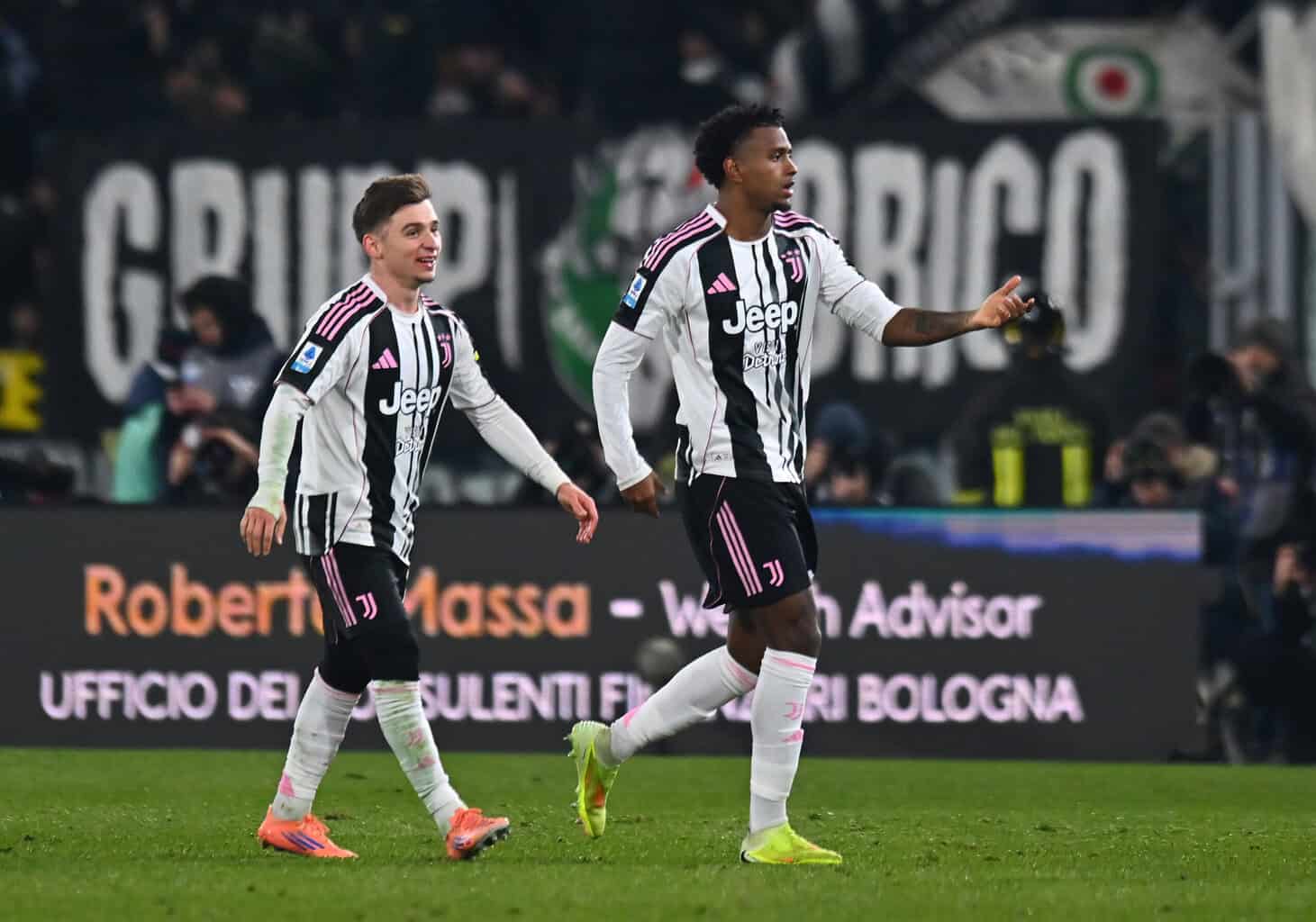 Mit zunehmender Spieldauer wurde die Partie immer ausgeglichener. Große Chancen blieben auf beiden Seiten allerdings Mangelware. Der Aufreger des ersten Durchgangs ereignete sich in der 33. Minute. Jonathan David kam im Strafraum nach einem Schubser von Jhon Lucumi zu Fall, die Pfeife von Davide Massa blieb allerdings stumm. Juventus wurde jetzt immer besser und erzielte durch Weston McKennie kurz darauf das vermeintliche 1:0, doch Yildiz stand bei der Entstehung knapp im Abseits (35.). Kurz vor dem Pausenpfiff hatte Bologna durch Nadir Zortea noch einen Lattentreffer (45+1.). Insgesamt war die alte Dame im ersten Abschnitt das etwas bessere Team. Tore fielen nach 45 Minuten allerdings noch keine.
