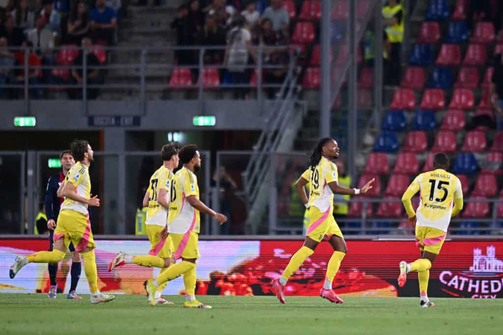 Bologna arbeitete nach etwa zwanzig Minuten mit fast zwei Dritteln der Spielanteile am Ausgleich. Die Hausherren traten engagiert auf, aber noch fehlte die nötige Durchschlagskraft. Sie suchten ihr Glück vor allem im Konterspiel (23.). Nicolò Cambiaghi hatte auf dem linken Flügel Platz, sah die Lücke und steckte den Ball in die Box zu Remo Freuler durch. Der Schweizer Nationalspieler wurde von Weston McKennie im Laufduell zu Boden geschickt. Der Ball war nicht dabei, Bologna forderte vehement den Strafstoß, doch der Pfiff blieb aus (30.). Nicolás González jubelte wenig später kurz: Einen weiten Schlag von Michele Di Gregorio verlängerte Randal Kolo Muani in den Lauf von González, der vor Skorupski eiskalt blieb und einschob. Doch sofort ging die Fahne hoch, der Argentinier stand im Abseits (42.). Zur Pause blieb es vorerst bei der 1:0-Führung für Juventus.