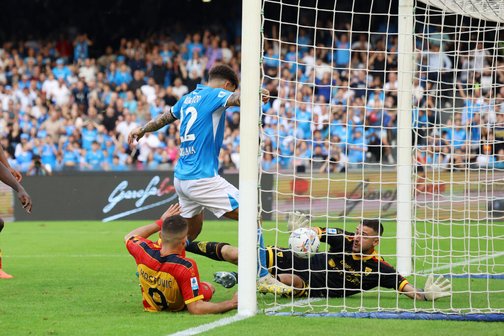 Zu Beginn gestaltete sich das Match durchaus körperbetont. Die SSC nahm dabei die spielbestimmende Rolle ein, während Lecce tief stand und auf schnelles Umschalten setzte. Es gab Torannäherungen auf beiden Seiten. Anschließend erhöhten die Neapolitaner den Druck, weshalb Giovanni Di Lorenzo den ersten Treffer der Partie erzielte. Aufgrund einer Abseitsstellung des Italieners kassierte der VAR dieses vermeintliche 1:o jedoch wieder ein. Als die Heimmannschaft weiterhin auf die Führung drängte, kam es nach einem Eckball zu einer gefährlichen Doppelchance der Giallorossi. Trotz vielversprechender Gelegenheiten, vor allem aufseiten Napolis, ging es ohne Tore in die Kabinen.