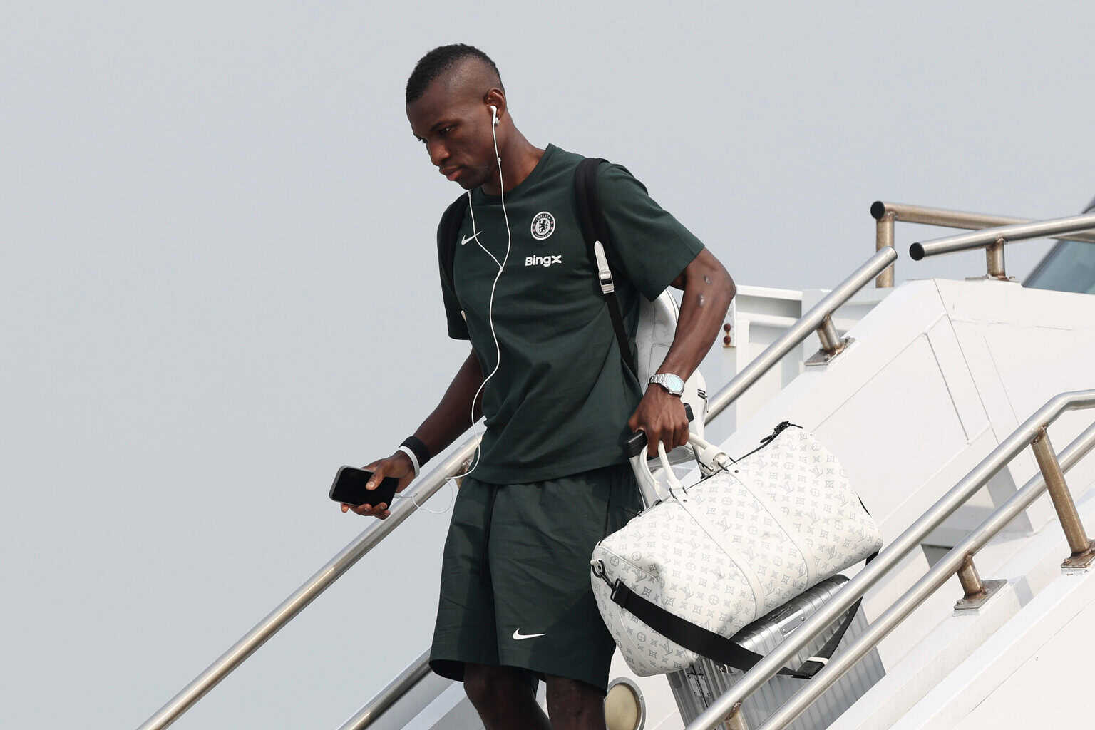 Nicolas Jackson steigt aus einem Flugzeug aus